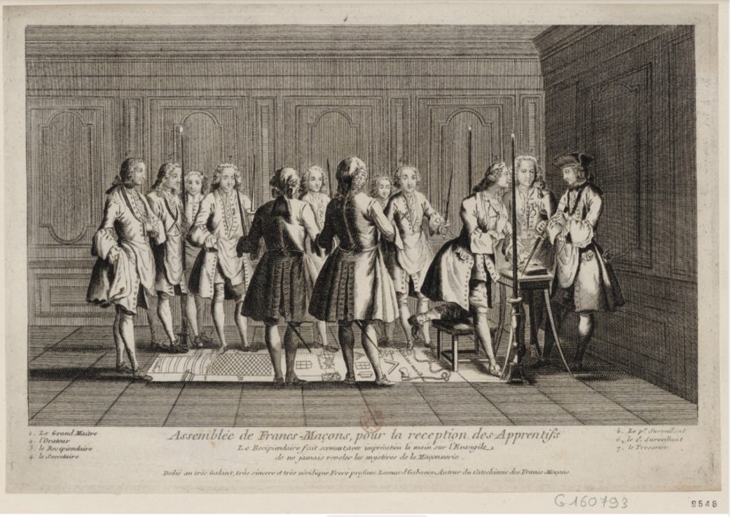 Assemblée de francs-maçons pour la réception des apprentifs (gallica.bnf.fr]